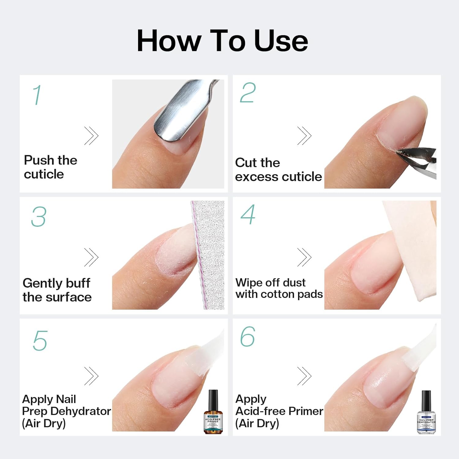 - GET STRONG ADHESION: Preparing the nail plate to create a foundation is the most important step in any professional artificial nail application. This set includes nail prep dehydrator and acid-free gel primer. Applying this set to have the best foundation for any gel nails like gel nail polish or poly nail gel!