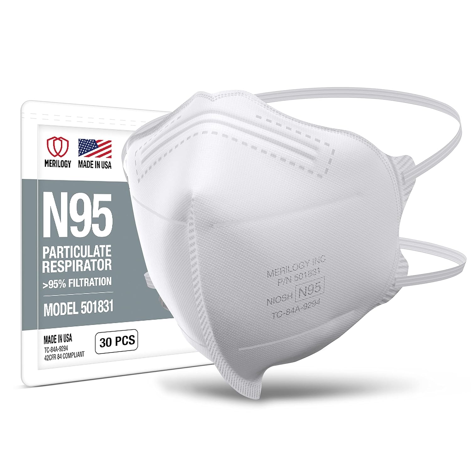 N95 Mask Respirator [ Made in USA ] NIOSH Certified N95 Particulate Respirators Face Mask (Pack of 30)